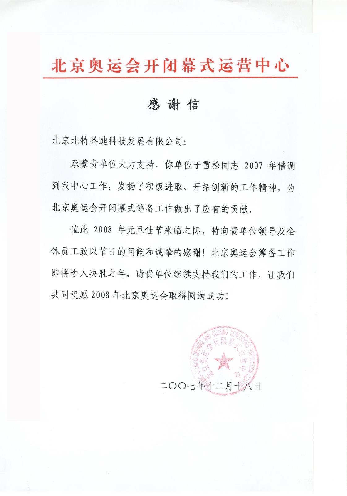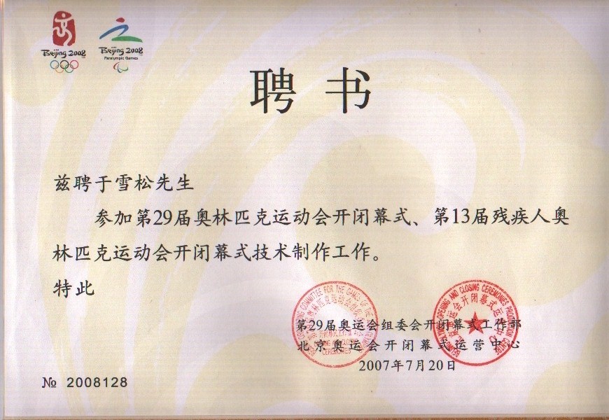 2008第二十九屆北京奧運(yùn)會(huì)、殘奧會(huì)聘書-于雪松