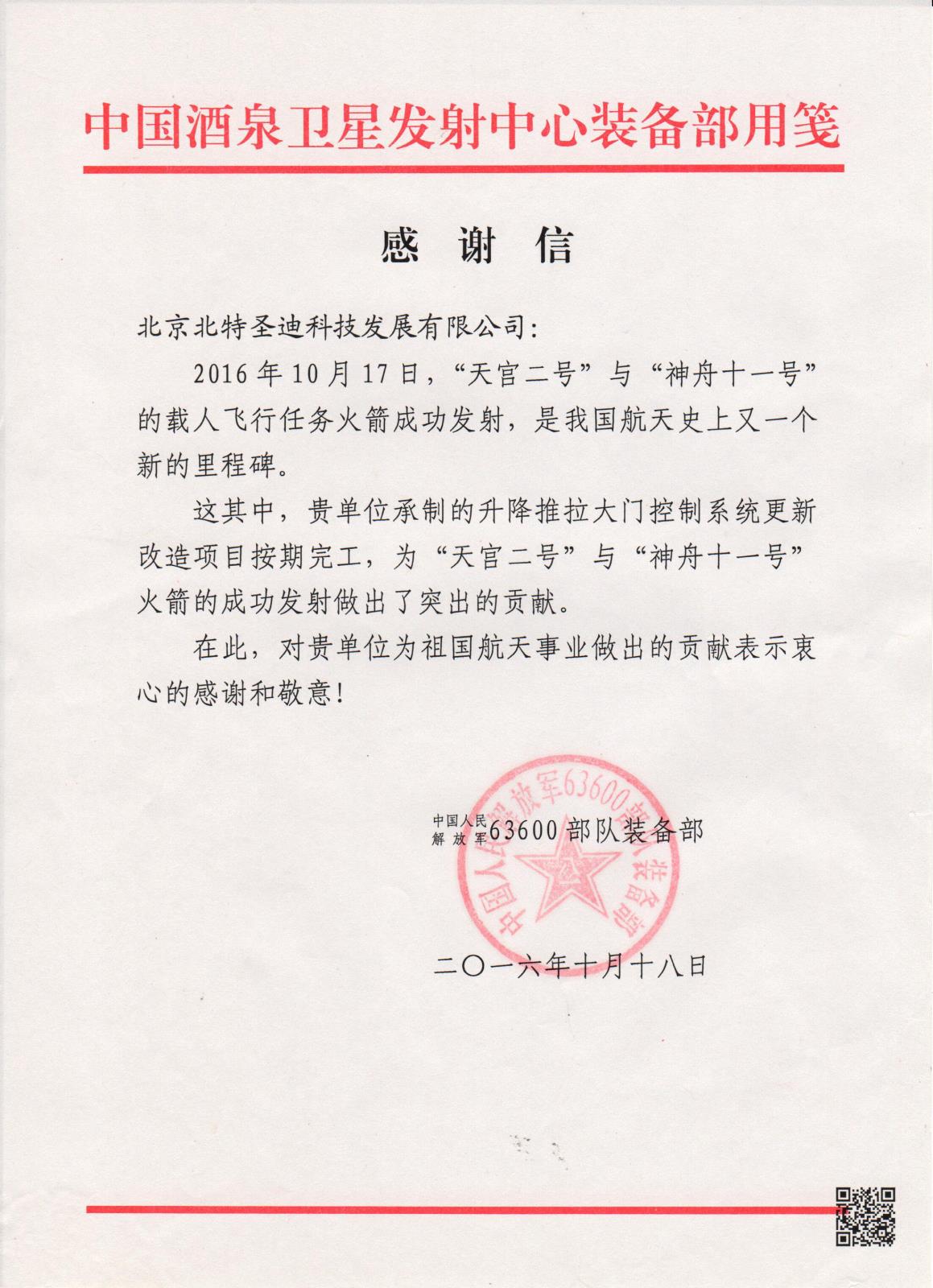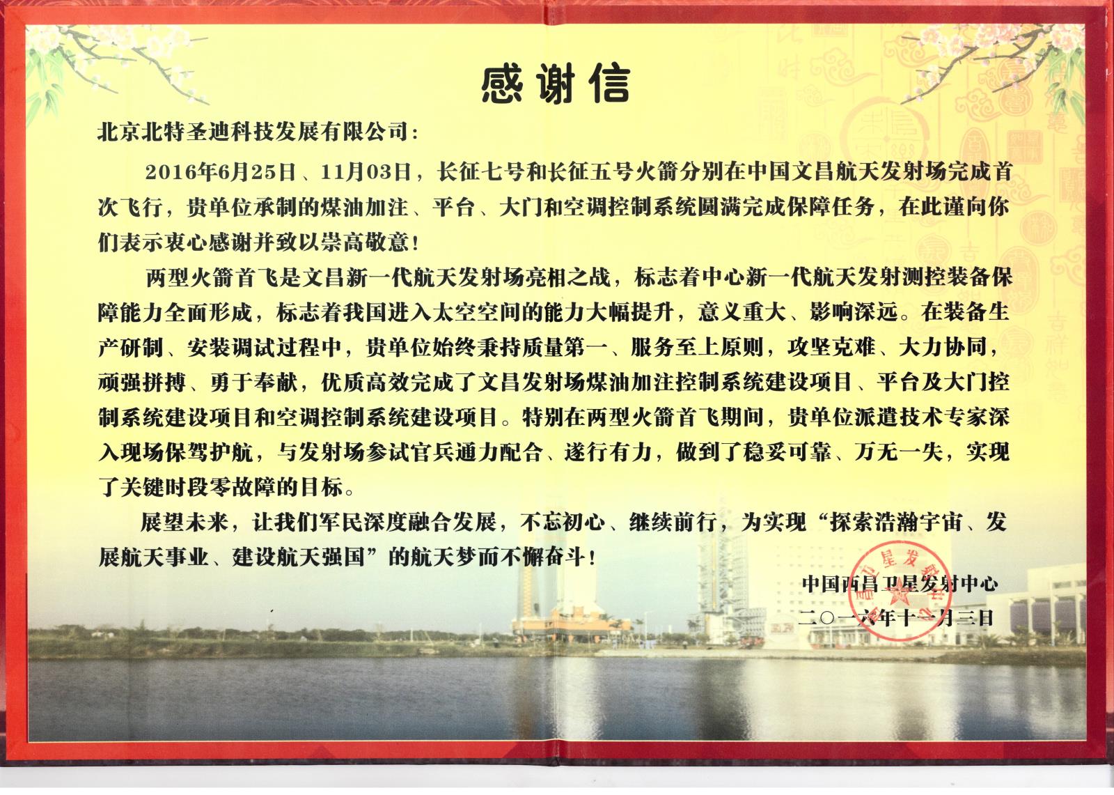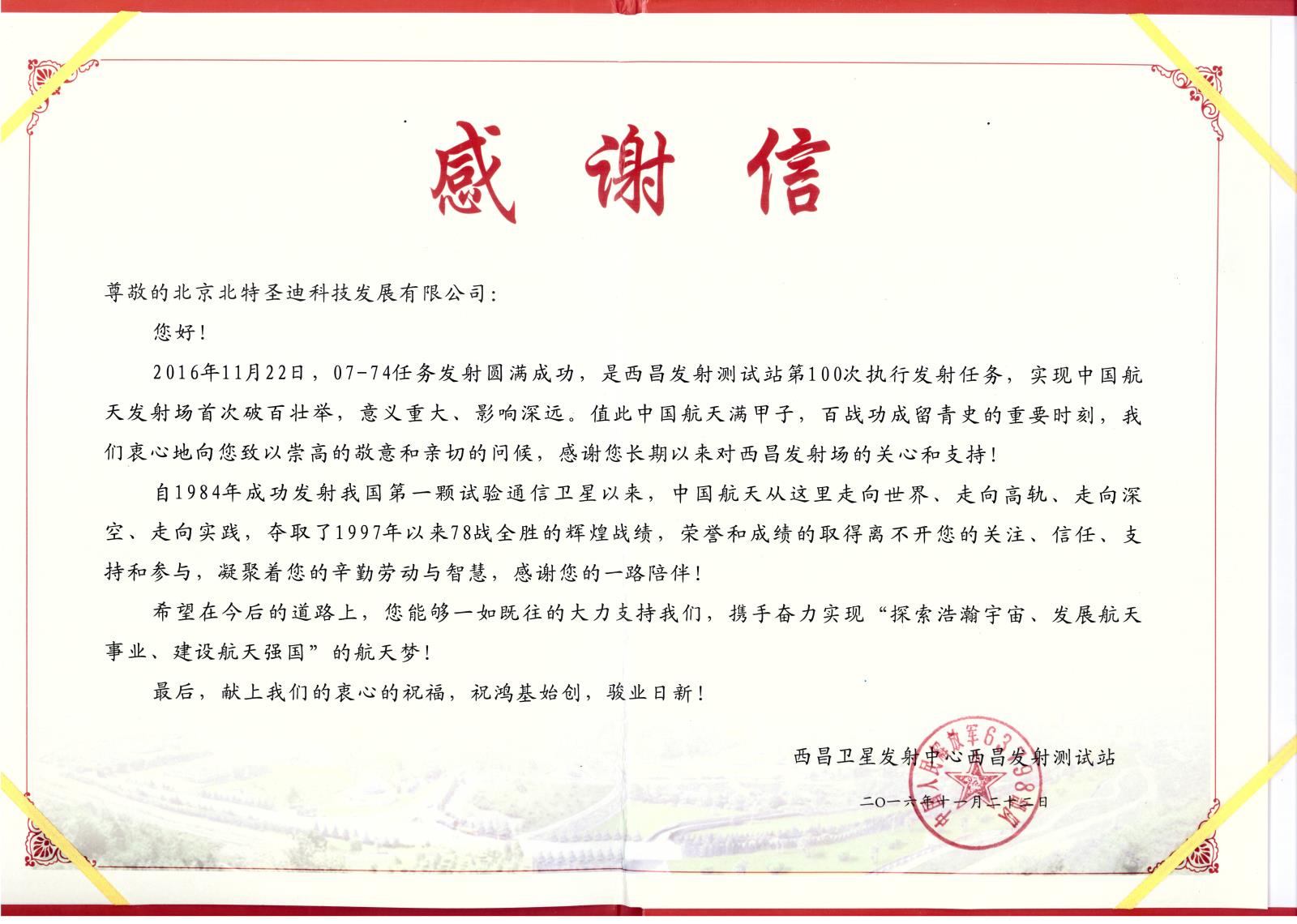 中國(guó)運(yùn)載火箭技術(shù)研究院感謝信