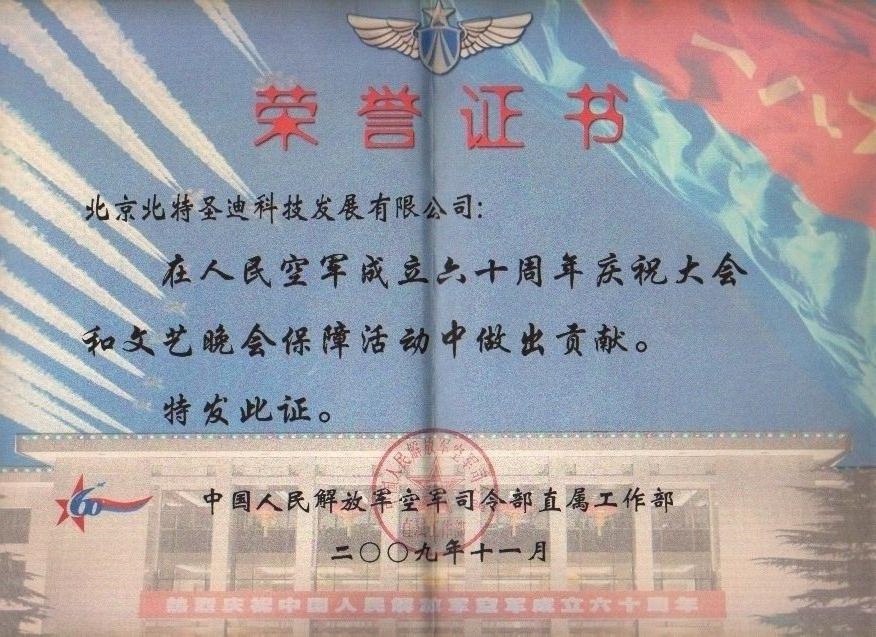 2009空軍成立六十周年慶祝大會(huì)榮譽(yù)證書