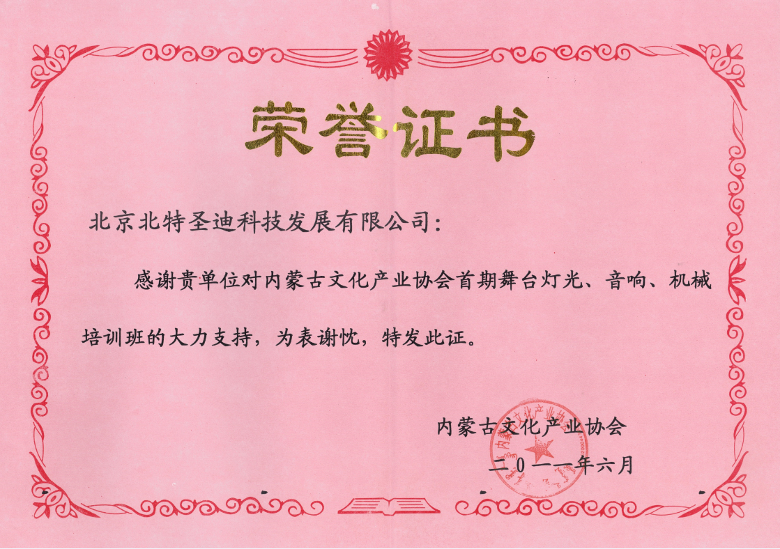 2011內(nèi)蒙古文化產(chǎn)業(yè)協(xié)會(huì)榮譽(yù)證書