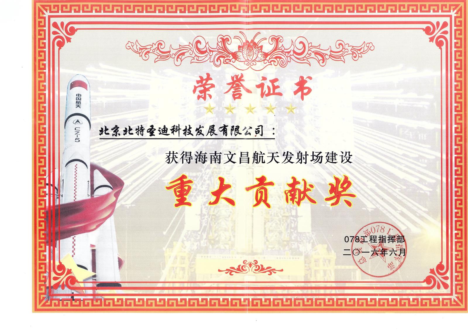 2016海南文昌航天發(fā)射場(chǎng)建設(shè)重大貢獻(xiàn)獎(jiǎng)
