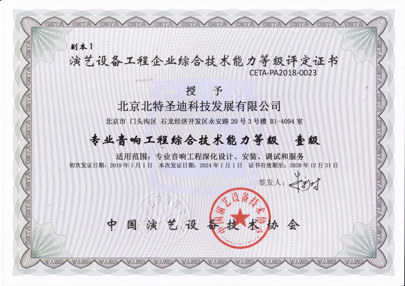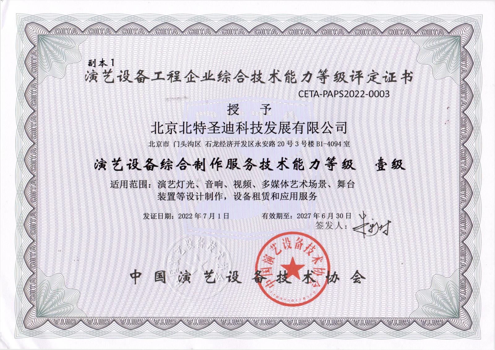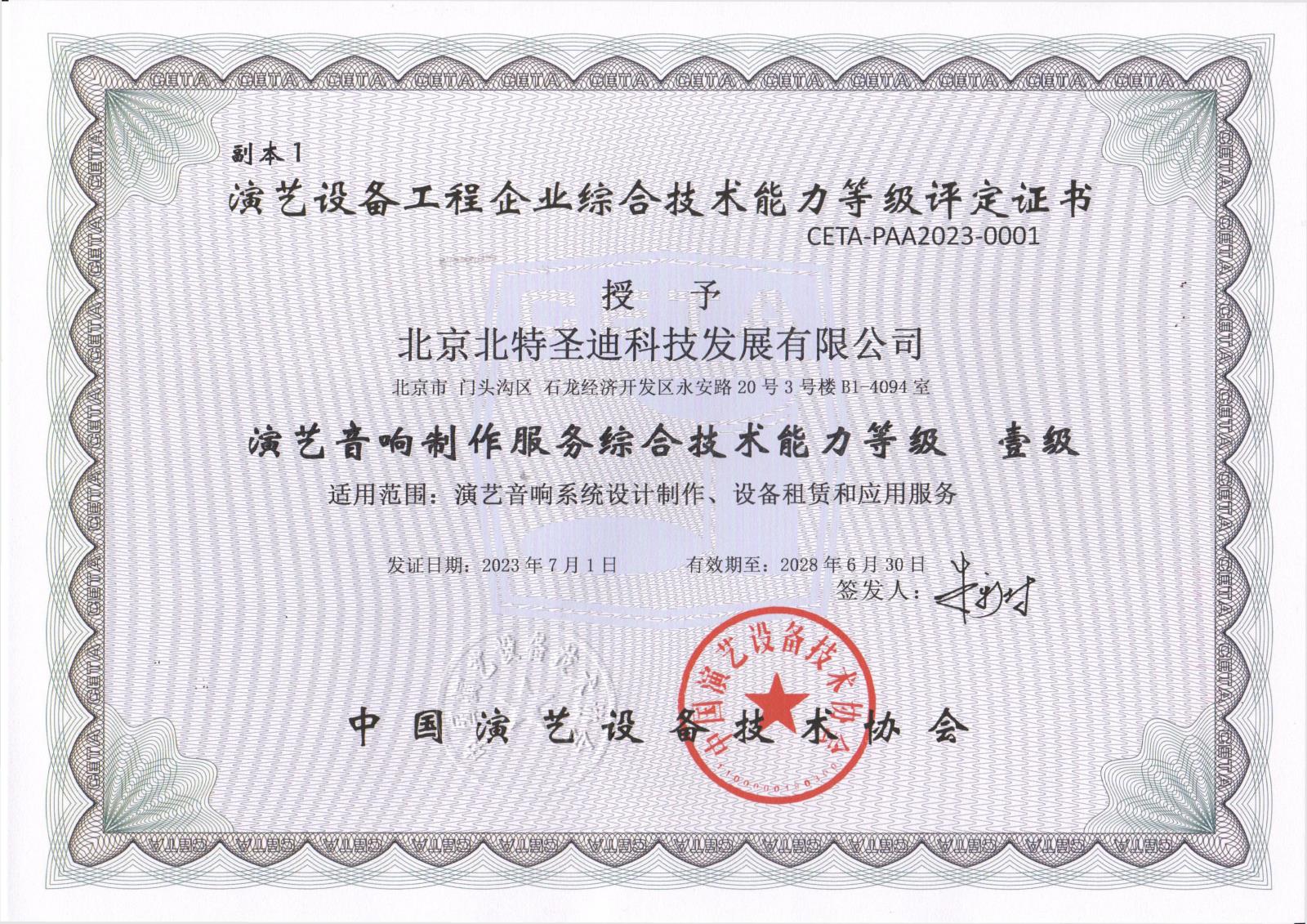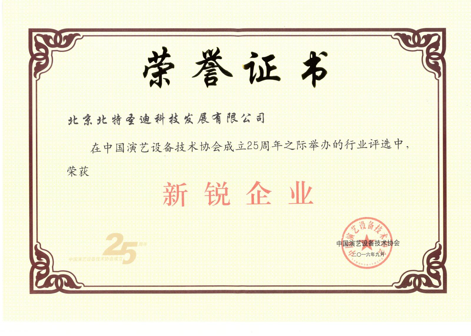 2016中國(guó)演藝設(shè)備技術(shù)協(xié)會(huì)成立二十五周年新銳企業(yè)榮譽(yù)證書