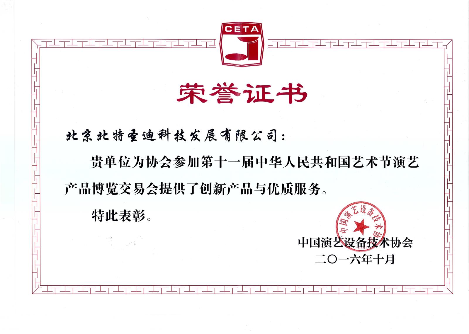 2016第十一屆中華人民共和國(guó)藝術(shù)節(jié)榮譽(yù)證書