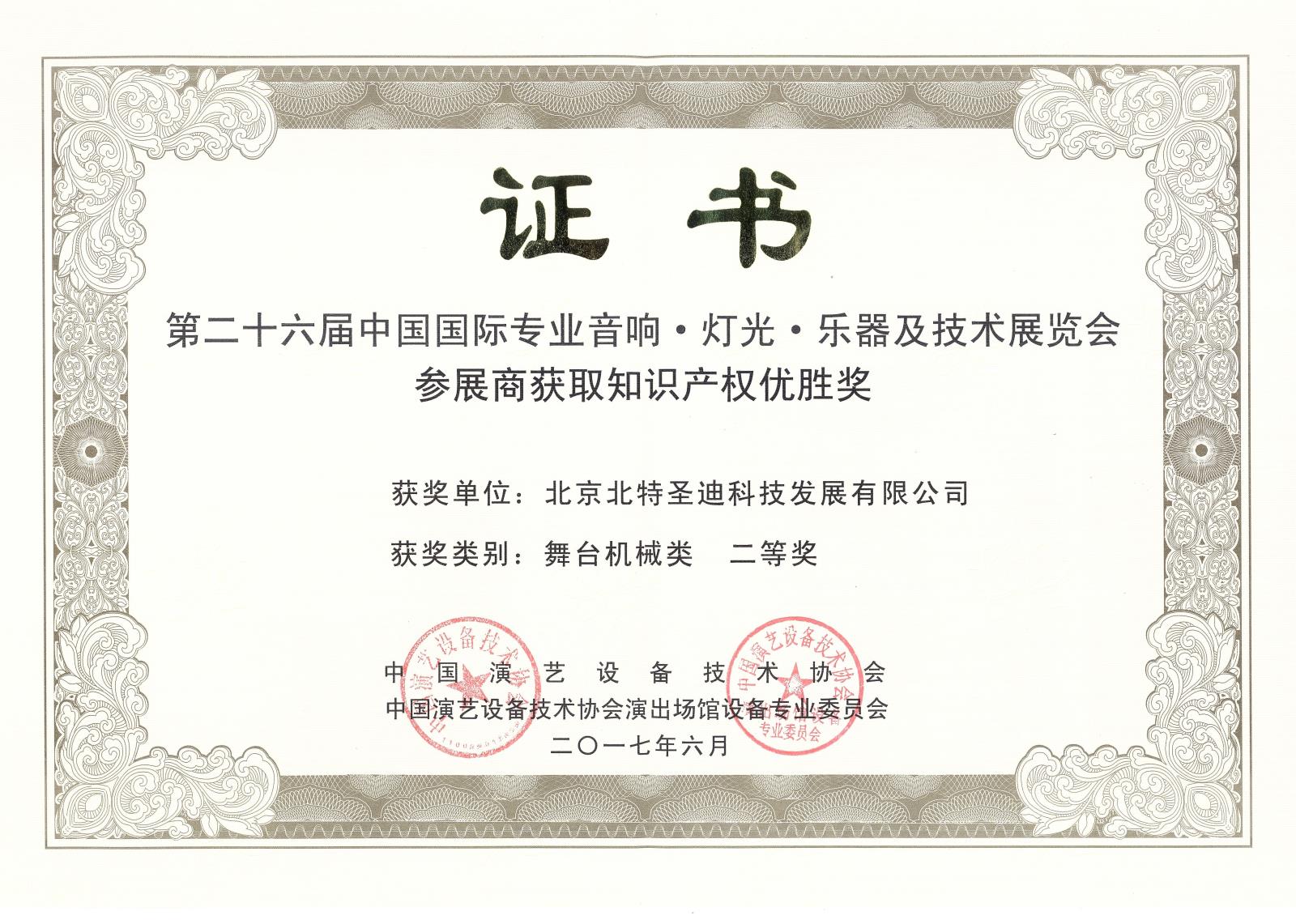 2017第二十六屆PALM展知識(shí)產(chǎn)權(quán)優(yōu)勝獎(jiǎng)-舞臺(tái)機(jī)械二等獎(jiǎng)
