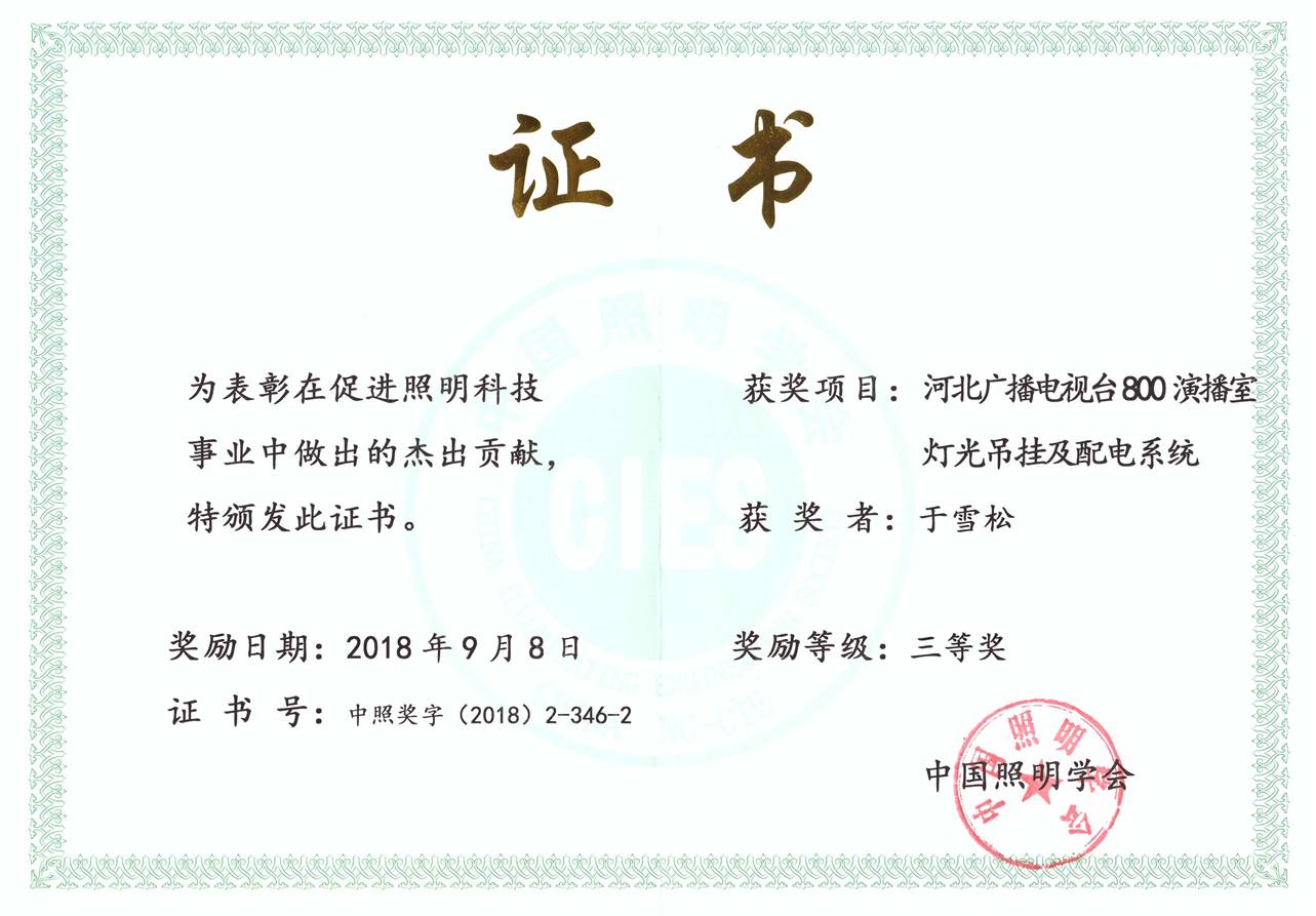 河北廣播電視臺(tái)800演播室燈光吊掛及配電系統(tǒng)個(gè)人三等獎(jiǎng)-于雪松
