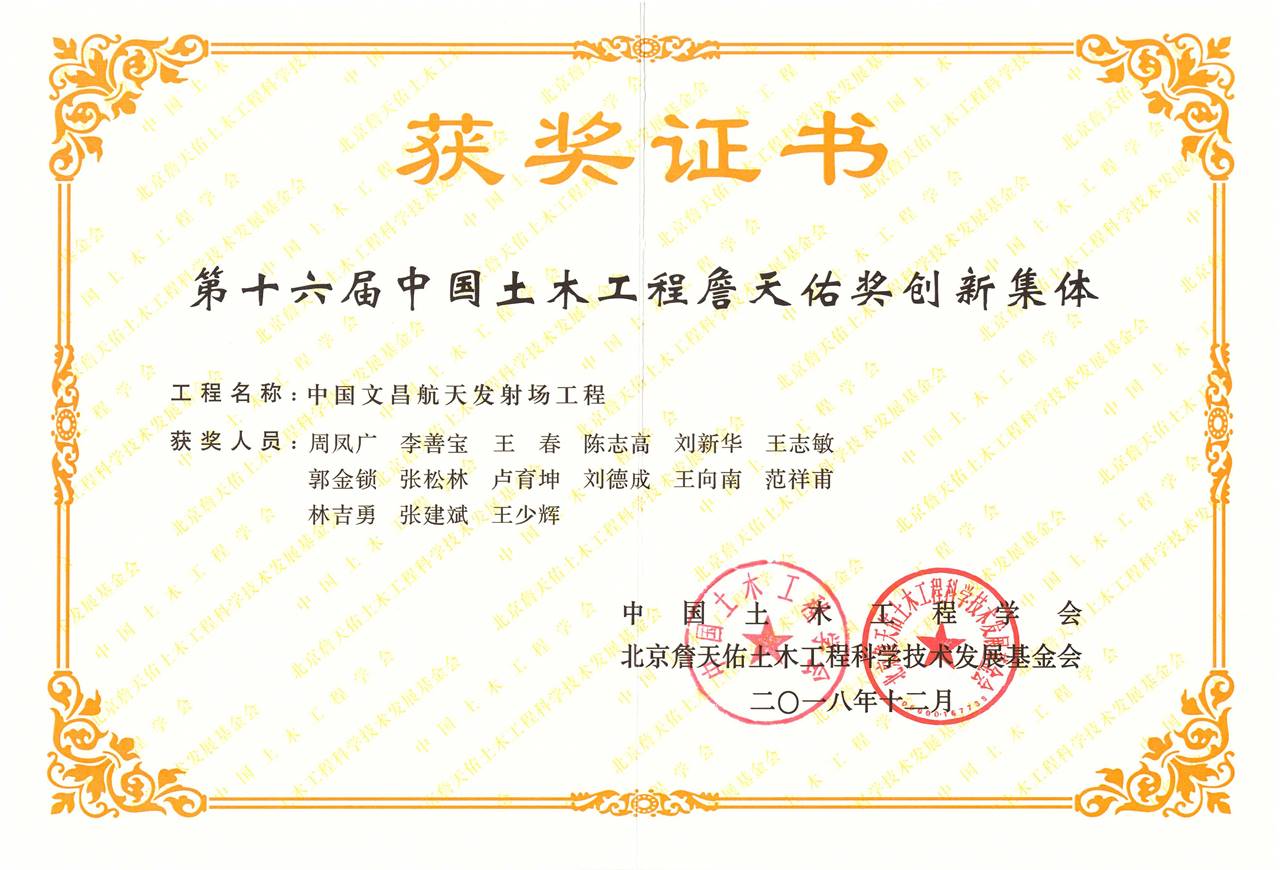 第十六屆中國(guó)土木工程詹天佑獎(jiǎng)創(chuàng)新集體
