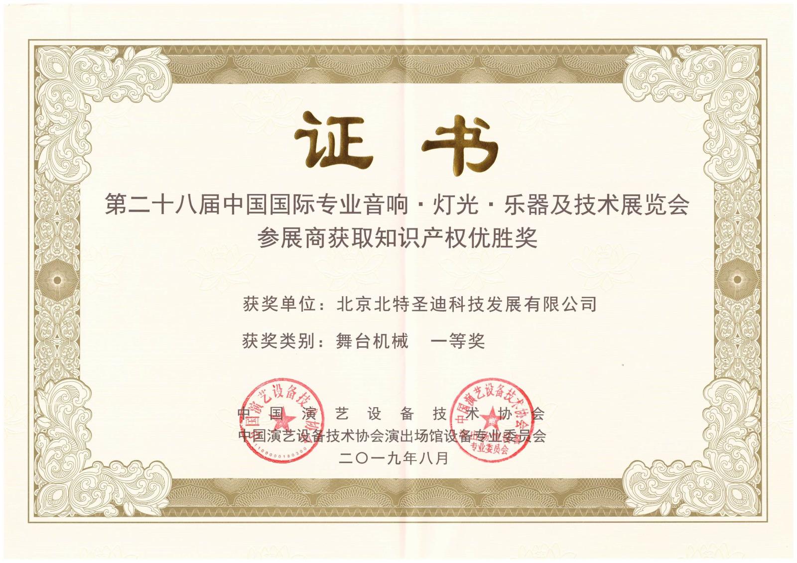 第二十八屆PALM展知識(shí)產(chǎn)權(quán)優(yōu)勝獎(jiǎng)-舞臺(tái)機(jī)械一等獎(jiǎng)