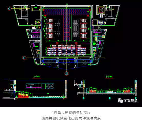 青島大劇院的多功能廳則采用了固定的升降臺,通過在升降臺上設(shè)置觀眾席的座椅數(shù)量來實現(xiàn)演區(qū)的變化。 除了劇場的多功能廳以外,各大電視臺的廣電中心有時存在需要考慮拍攝角度的問題,也會將舞臺區(qū)、觀眾區(qū)融合在一起,因此也呈現(xiàn)出各種各樣的多功能式舞臺空間。