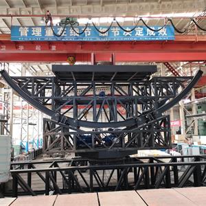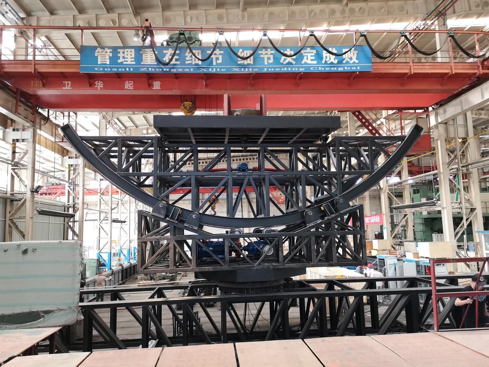 (3)海盜船動(dòng)作功能:大船的底部在長(zhǎng)度方向?yàn)閳A弧面,船體可沿長(zhǎng)度方向前后滑移,呈現(xiàn)在巨浪中前后擺動(dòng)的效果,且前后擺動(dòng)的幅度60°。