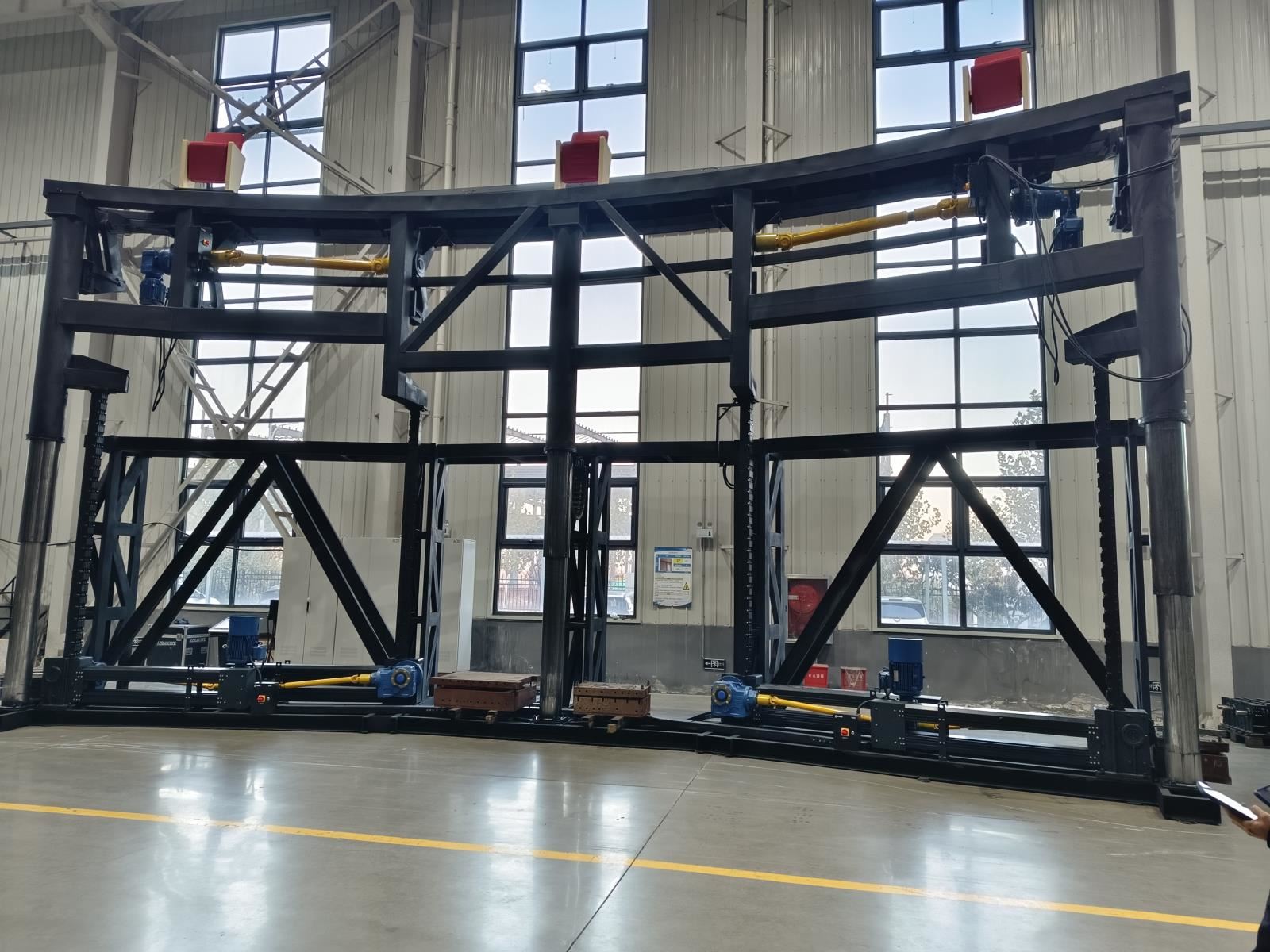 設(shè)備組成:鋼結(jié)構(gòu)臺(tái)架、升降驅(qū)傳動(dòng)裝置、座椅翻轉(zhuǎn)驅(qū)傳動(dòng)裝置、導(dǎo)向系統(tǒng)、行程檢測(cè)裝置、防剪切等安全保護(hù)裝置、控制系統(tǒng)、座椅等。