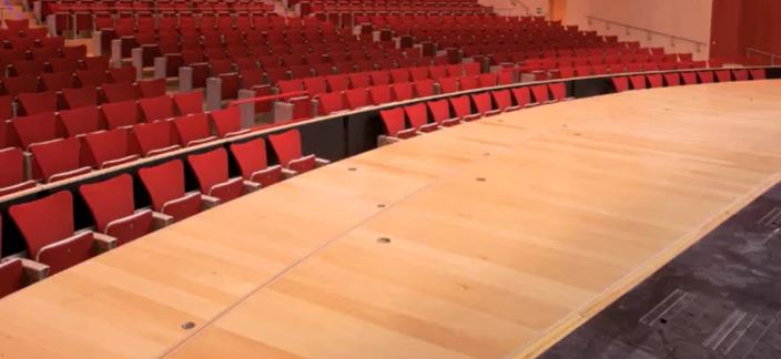 擴(kuò)展舞臺(tái)——前區(qū)座椅收起,升降臺(tái)臺(tái)面與舞臺(tái)面持平,擴(kuò)大表演區(qū)。