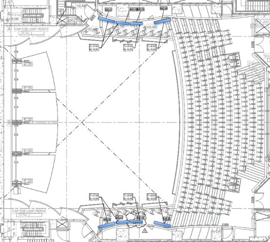 JJH | 31 | 1.2m-2.5m | 1.5m-4m | ~0.1m/s | 雙層吸聲簾幕,明裝位于觀眾席兩側(cè)及后側(cè)。 |